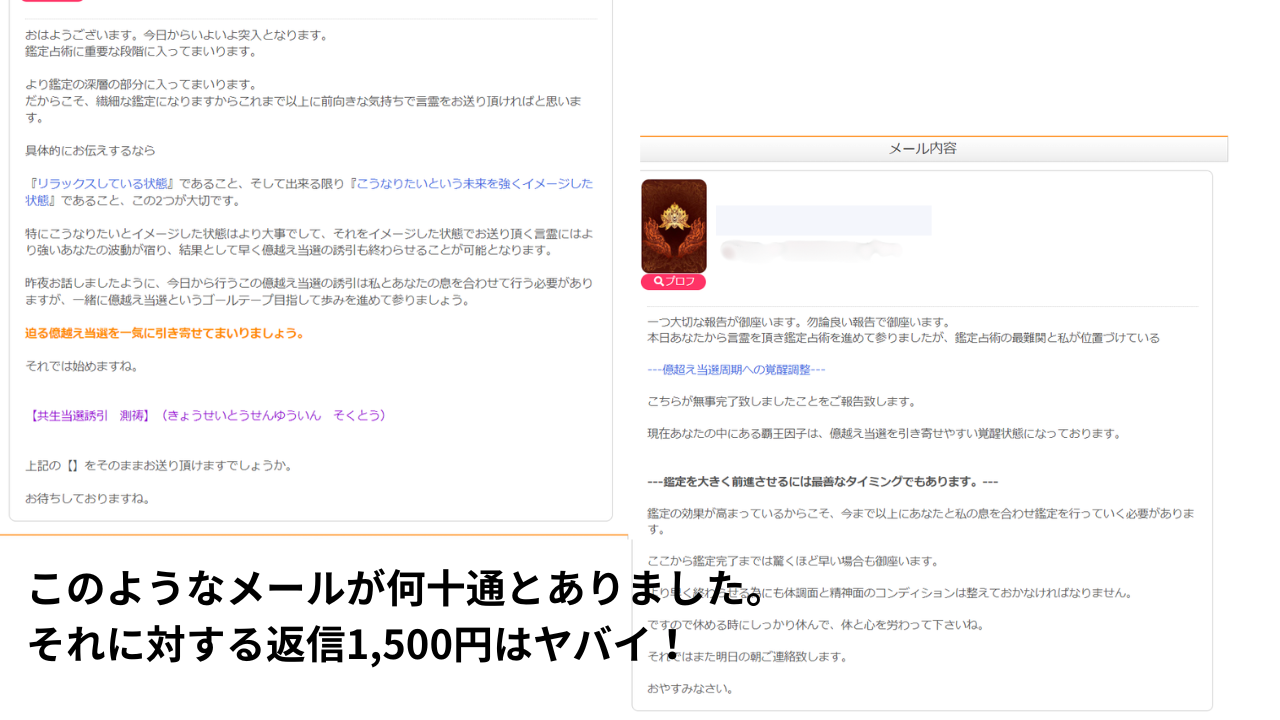 最初から鑑定することなど目的ではなく、いかに返信をさせてポイントを買わせるか。