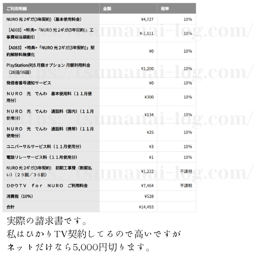 僕が支払っている月々15,000円の内訳は、ネット代だけでなく、以下のものがすべて含まれています。